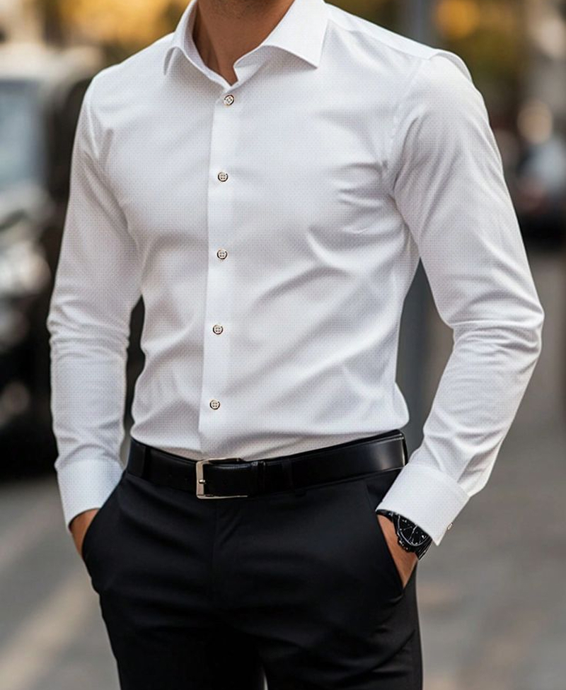 белая рубашка, черные брюки, туфли